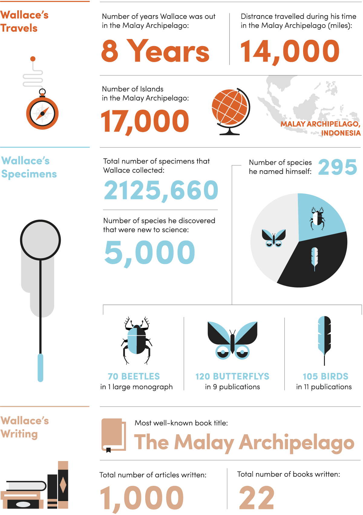 Wallace’s collecting prowess in the Malay Archipelago earned him pride of place in the history books as one of the modern world’s greatest scientific adventurer-explorers. Amongst the 125,000 specimens he collected in the region, Wallace discovered a staggering 5,000 new species, and his study on the adaptations of the region’s tiger beetles earned him the accolade ‘independent co-discover of the theory of evolution through natural selection’, alongside Charles Darwin.